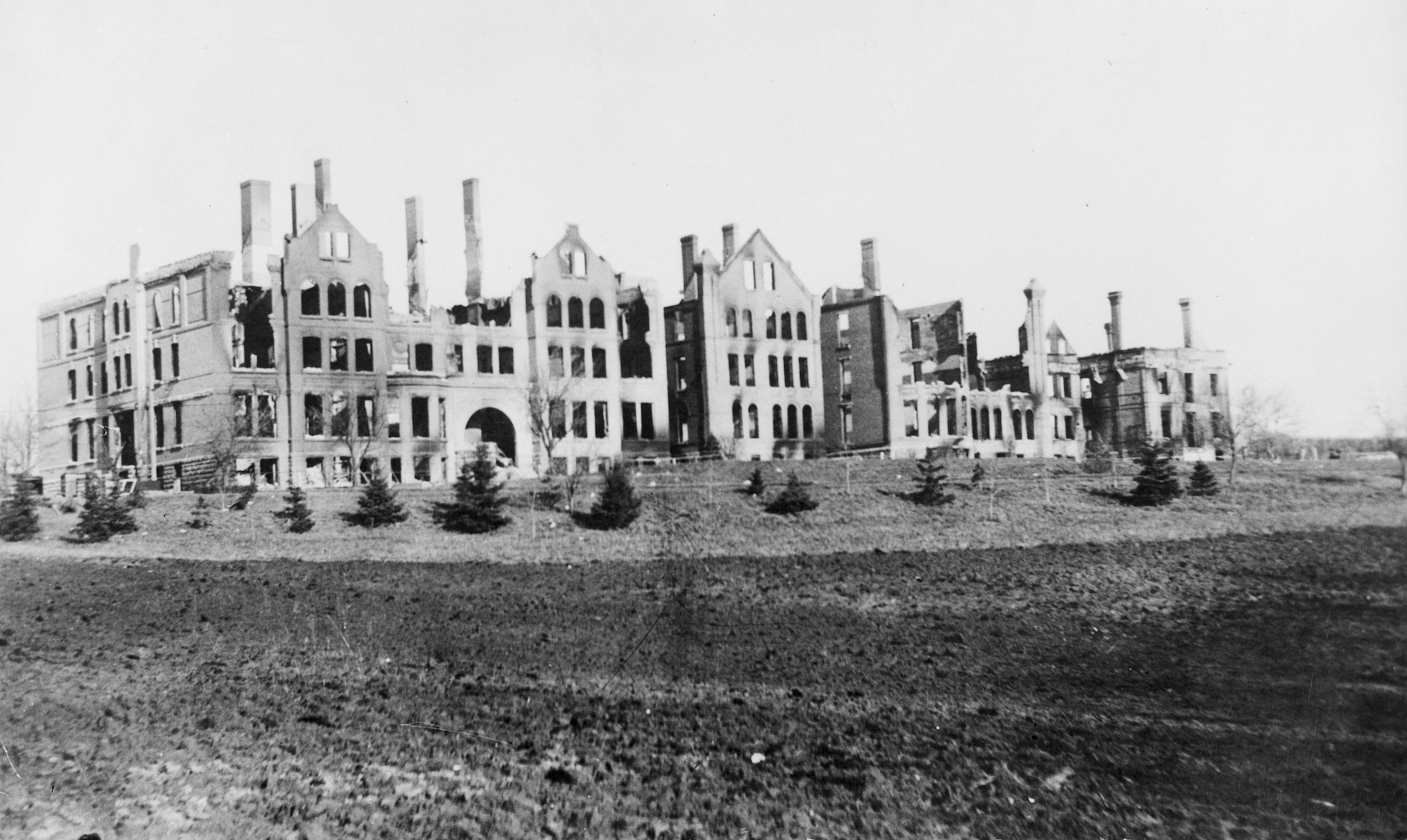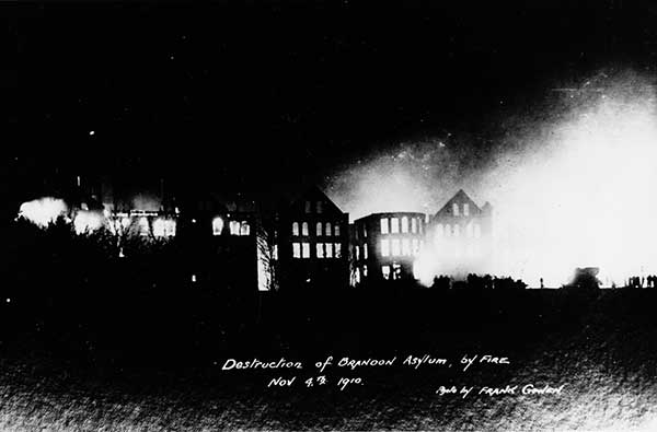 Destruction de l’asile de Brandon par un incendie, novembre 1910