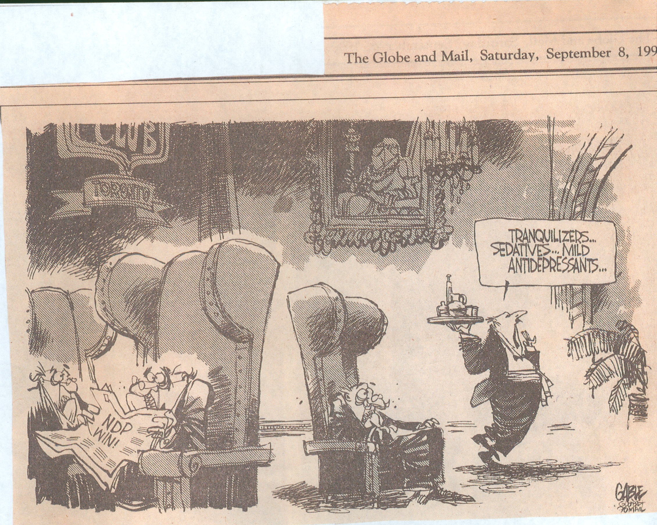 Political Cartoon: political cartoon published in The Globe and Mail.  Dated September 8th, 1990.